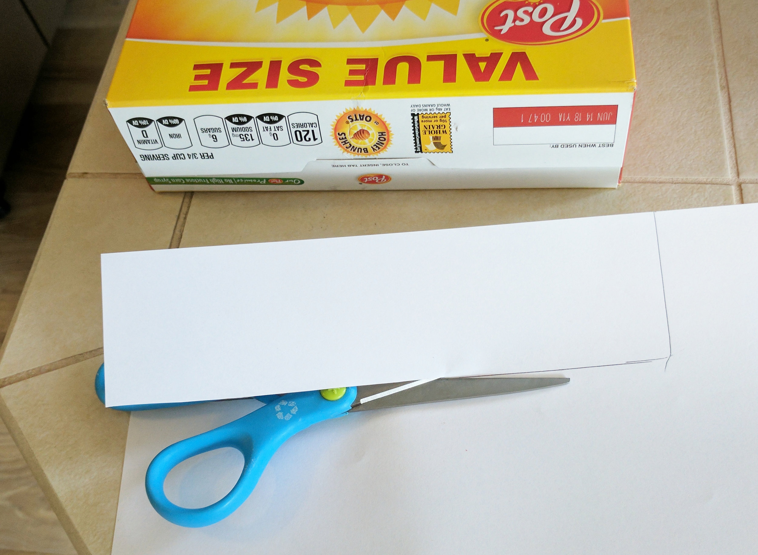 Cut the paper to fit the inside bottom of your box and tape it in place. (Note, I chose the a short skinny side but any side will do.)